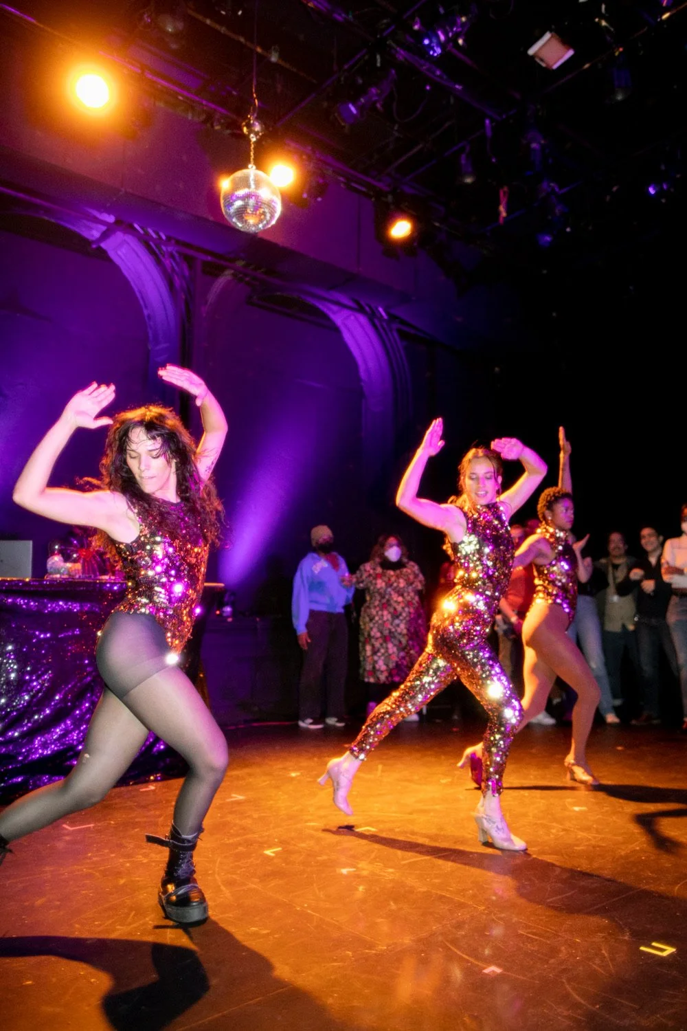 Fortuity made its debut at The Public Theater as part of the Devised Theater Working Group Residency. In this electrifying workshop showing, audiences stepped into an immersive disco wonderland, guided by the ageless character Fortuity. The performance transformed the space into a pulsating nightclub, blending live music, poetry, dance, DJ breaks, and burlesque into a one-of-a-kind theatrical experience.